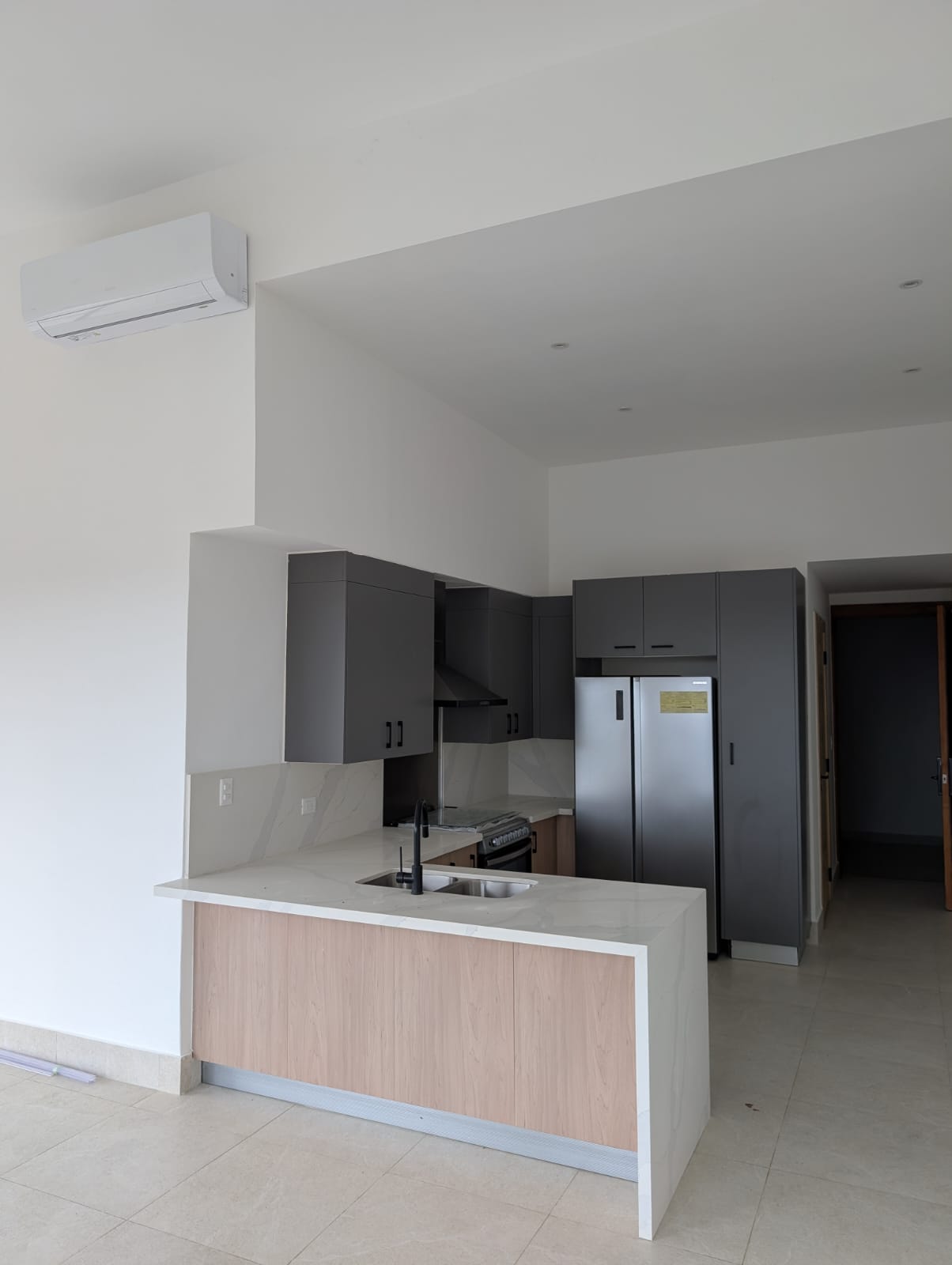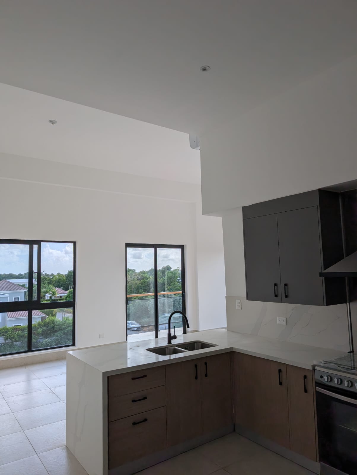 Step into sophisticated, brand-new living with this stunning 1-bedroom apartment located in the prime Puntacana Village. This unit features dramatic double-height ceilings and expansive panoramic windows throughout, creating an airy, light-filled space with superior aesthetic appeal. Enjoy total comfort with air conditioning in all areas, a private ensuite bathroom, and a convenient guest half bath. The unit includes a modern, equipped kitchen, ready for your culinary use. Residents benefit from the building’s exceptional amenities—including an on-site gym and a spectacular rooftop terrace with a pool, BBQ area, and games—plus access to all the renowned community amenities offered by Puntacana Village
