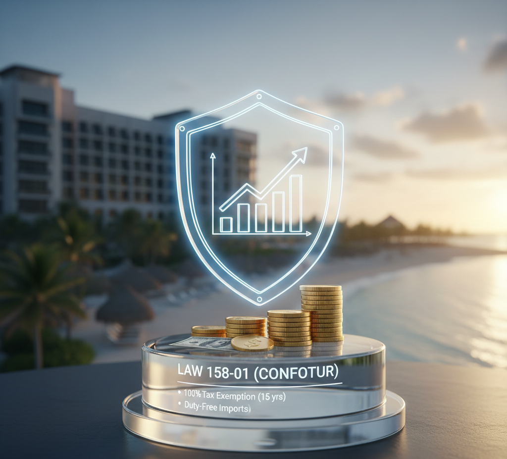 Institutional trust begins with the legal framework. The Dominican Republic’s Law 158-01 (CONFOTUR) is one of the most aggressive tax incentive programs in the Western Hemisphere. For qualified projects, it offers: